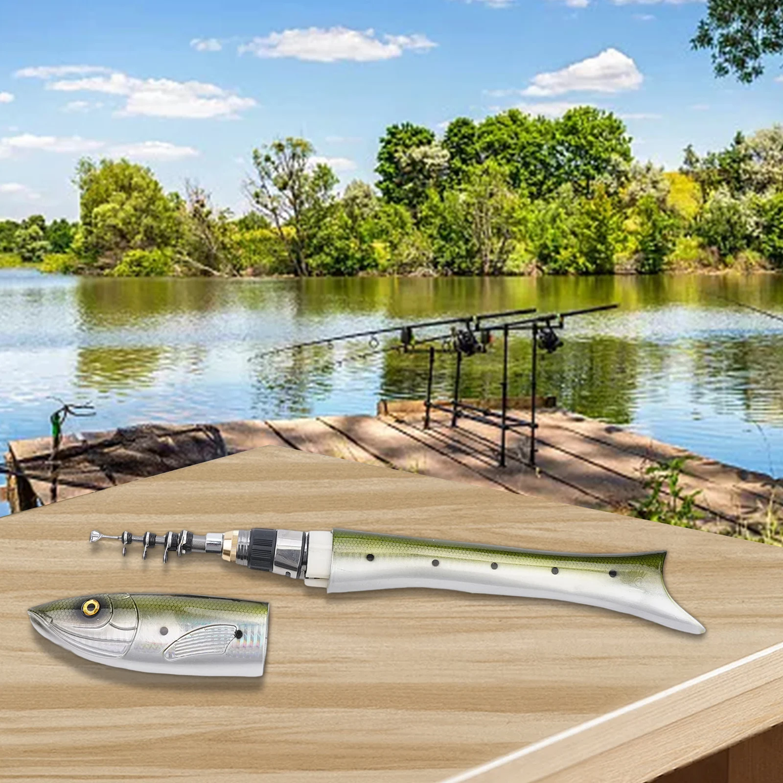* Adjustable length fishing rod for situations where full-size fishing gear is inconvenient.